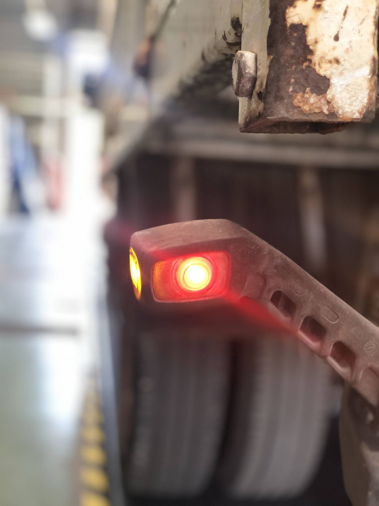 Feu de couleur autre que blanc à l’avant ou rouge à l’arrière ; intensité lumineuse fortement réduite