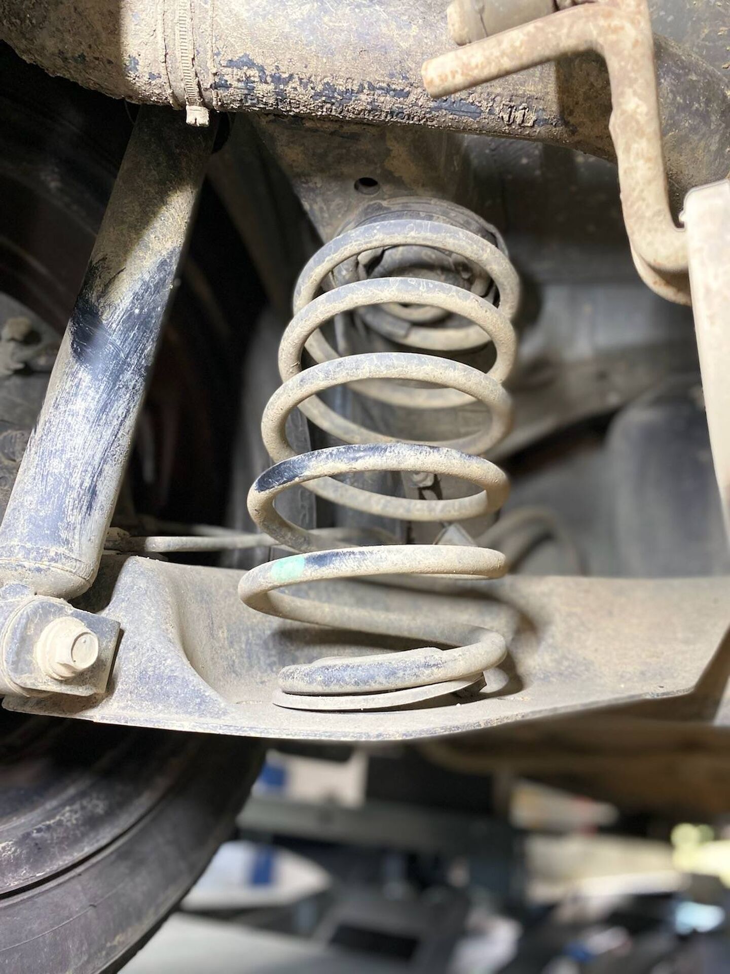 Mauvaise attache des ressorts ou stabilisateurs au châssis ou à l’essieu : jeu visible ; fixations très mal attachées |