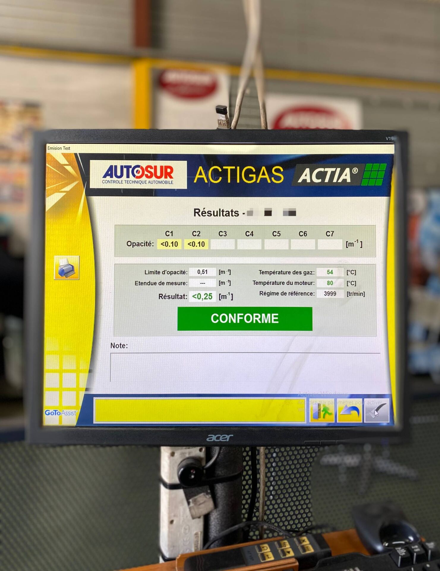Autosur Martigues, centre de contrôle technique, vérifie l'opacité des gaz d'échappement émis par votre véhicule diesel lors du contrôle de la pollution